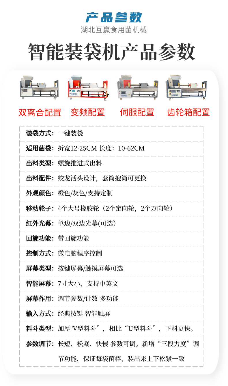 近年來代料香菇裝袋機(jī)的發(fā)展,越來越迅猛。其規(guī)模不斷擴(kuò)大,品種不斷增多,地域限制越來越少。是農(nóng)民增收的可靠保障,也是地方政府的經(jīng)濟(jì)支柱。自動套袋食用菌裝袋機(jī)廣泛用在香菇、木耳、平菇、金針菇、茯苓、灰樹花、姬菇、秀珍菇等食用菌種植領(lǐng)域。是工廠、基地、合作社、家庭農(nóng)場理想的工廠化生產(chǎn)機(jī)械。生產(chǎn)規(guī)模的大小可根據(jù)資金、銷售量、經(jīng)營方式、技術(shù)力量、資源條件等綜合因素來確定,可用單機(jī),也可組合設(shè)計成半機(jī)械化...