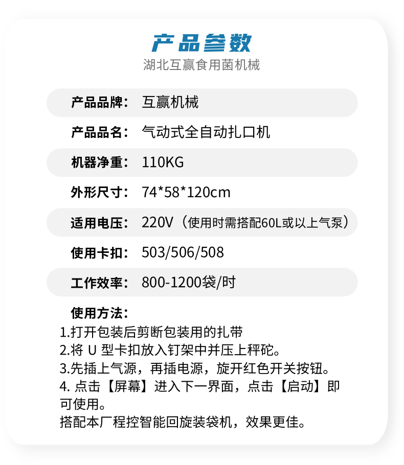 食用菌氣動(dòng)扎口設(shè)備